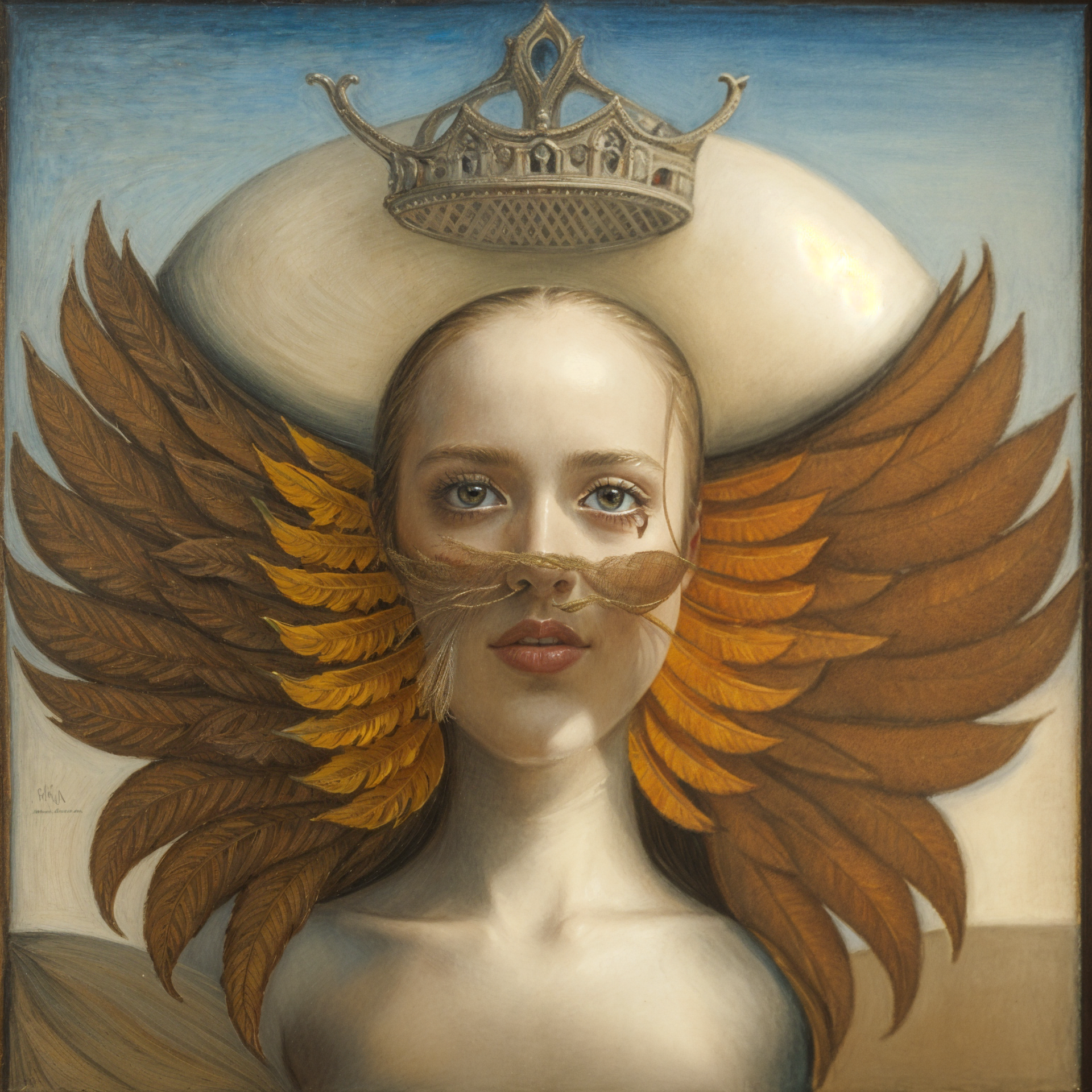 A pair of magnificent wings unfurl, stretching outward with grace and grandeur. These wings symbolize the freedom of the spirit and the transcendence of earthly limitations. They evoke a sense of upliftment and liberation, as if the skull is ascending to higher realms or embodying the essence of the celestial.
