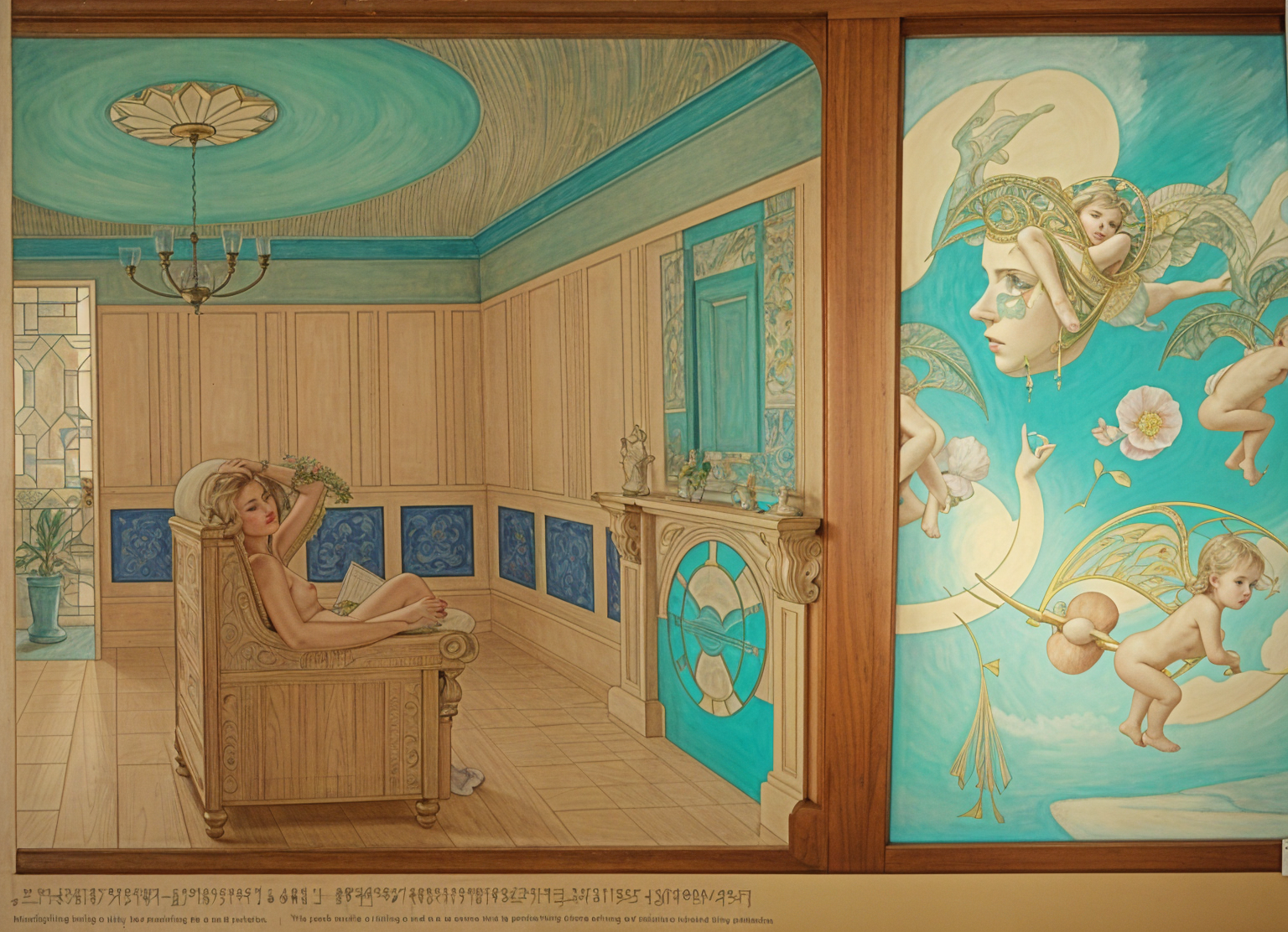 In this imaginative illustration, we are introduced to an extraordinary technological breakthrough. This revolutionary domestic heating solution harnesses the remarkable power of interdimensional portals, ingeniously transforming cherub's flatulence into a sustainable and eco-friendly source of warmth for homes. The artist's whimsical depiction brings this fantastical concept to life, evoking both curiosity and amusement.